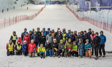 Thirdly, when the club transitioned from coaching and training on the dry ski slope at Rossendale to eventually using the newly built indoor ski slope at the Chill Factore in the early 2000s, telemark skiing exploded in popularity amongst members, whether they came from a track or back country skiing background or were converting from Alpine. Early telemark enthusiasts Ralph White and Nigel James were pioneers in this regard, taking other members on club trips to the telemark festival at Braemar/Glenshee, then further afield to Italy for the telemark festival at Livigno, and even to Canada (Banff and Lake Louise) for top‑class snow conditions. Similarly, other members did much of their early telemark training with John Eames and Bonnie Masson of the Telemark Ski Company in places like Tignes and La Thuile, taking one or two trips a year. However, the advent of the Chill Factore was a game‑changer: not only did the club have a first‑rate indoor slope on its doorstep but it also benefitted from the expertise of some of the best telemark coaches in the UK who ran regular sessions for its members from the 2000s onwards. Andy and Chris Stewart, Ian Johnston and John Holgate all initiated many members into telemark skiing and led others in their wake as coaches, such as Joyce Pemberton. The fact that the perennially successful North West Telemark Festival has been organised for many years by the club at the Chill Factor also attests to these coaches’ dedication, enthusiasm and sheer passion for the sport.