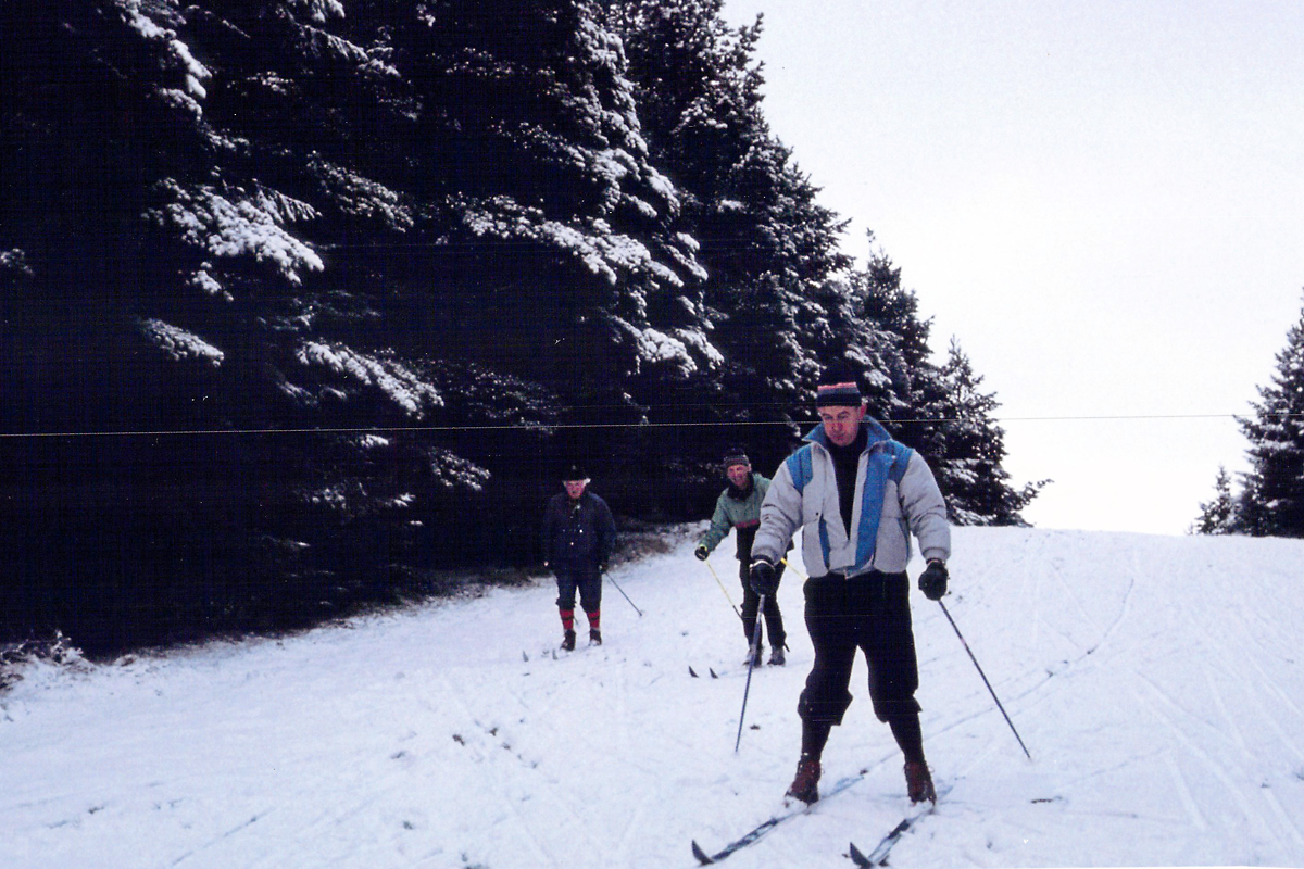 The Manchester club first got going thanks to meetings in Altrincham pubs in the winter of 1983/4 of interested parties and enthusiasts who had already done some skiing, usually Alpine, but who also wanted to try Nordic, such as Nigel James, Archie Bradley, Ralph White and Dave Pearce who ran a winter sports shop in Altrincham. Out of these meetings arose the decision to start and develop a cross‑country ski club. First meetings of this group followed, usually in each other’s houses, a committee structure soon emerged, and the main lines of the club’s activities and programme were set out. These remained fairly constant throughout the 1980s and 1990s, such that the club developed strongly in this period, becoming one of the biggest and most active in the country by the end of the twentieth century.