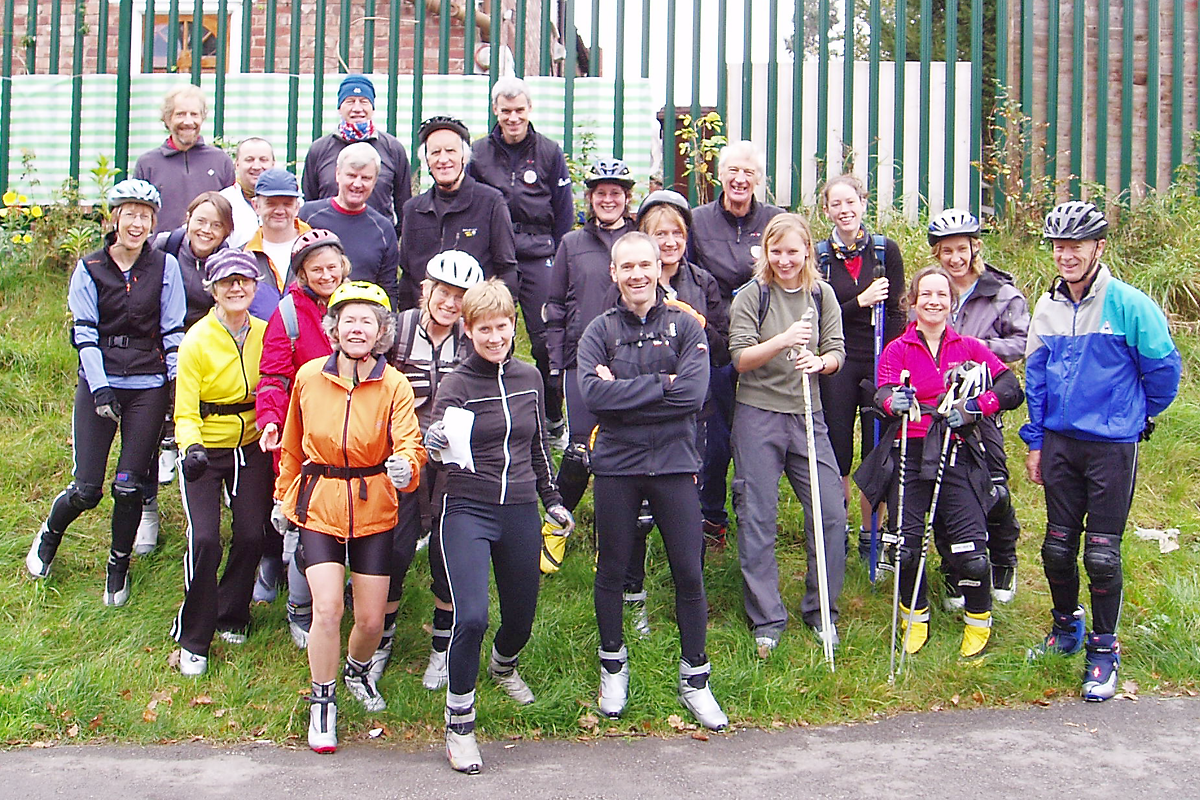 Finally, rollerskiing has become something of an activity in its own right as well as being a form of training for track skiing, loppet racing or hut‑to‑hut touring, particularly since the club moved about ten years ago to the cycle track at UCLan in Preston. This change in venue has not only meant that the club finally has regular use of a proper dedicated track but its location has allowed it to join forces with coaches from other northern clubs who are also Manchester members, such as Mike Smith (Lakeland). Although the club used to lead rollerski tours along cycle tracks in places like Chester (River Dee), the Lakes (Camerton to Whitehaven), Lancaster (Crook of Lune to Heysham), the Peak District (Manifold Trail, Upper Derwent Valley) and North Wales (Prestatyn to Colwyn Bay), these have been superseded in recent years by open track sessions at UCLan and Tameside cycle track. These sessions offer a more reliable and manageable way for skiers of all abilities to clock up the miles on rollers and are proving particularly popular with those members who have been coming on the club’s recent track skiing trips to Dobbiaco, with lessons provided by its own coaches such as Rosie Blades, Ros Brown‑Grant and Alison Pawley.